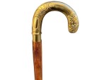 Vintage Floral Engraved Brass Handle Walking Cane – Foldable Wooden Walki...