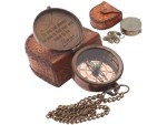 Grow Old Along With Me Engraved Brass Compass With Leather Case | Robert Br...