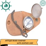 Handcrafted Brass Compass With Leather Case – Engraved Ralph Waldo Emerso...