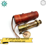 Handmade Brass 14 In Telescope With Black Leather Case