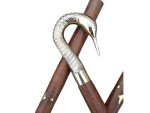Vintage Swan Face Brass Handle Walking Stick Handcrafted Wooden Cane With S...