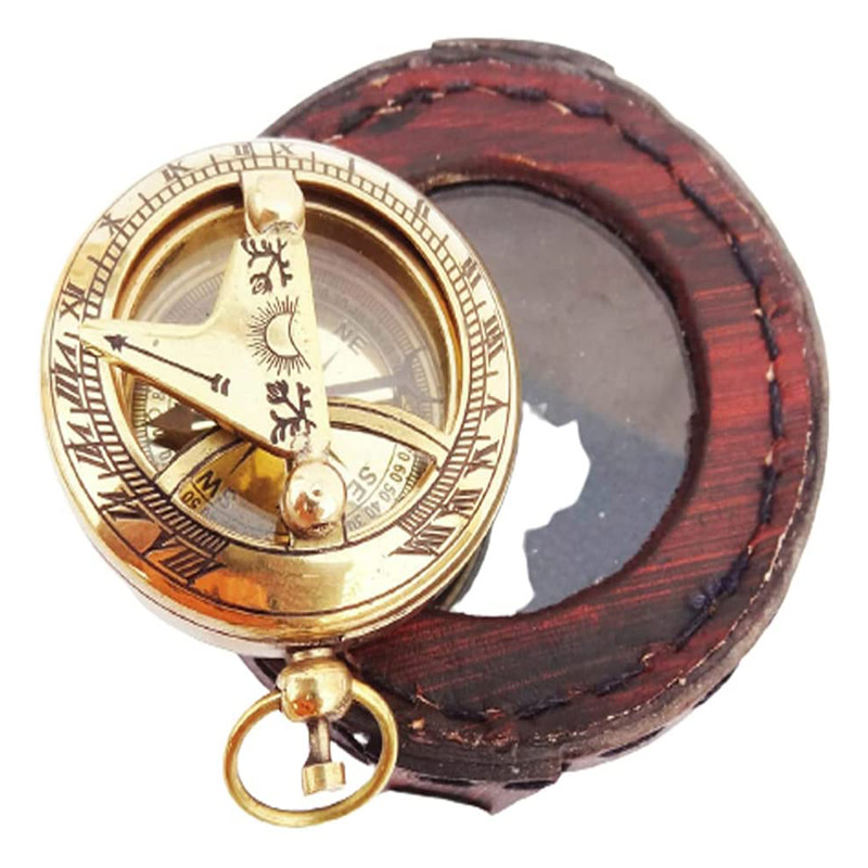 MATERIAL: Brass Glass, Leather Solid Push Button Sundial Compass