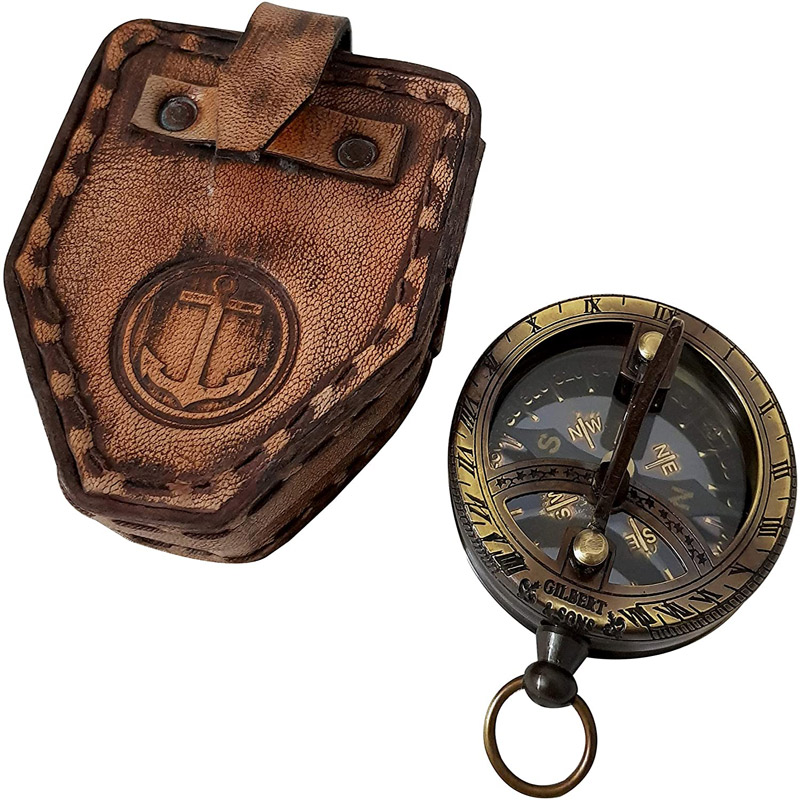 UNIQUE GIFT: MOM to Son Best vintage gift wrist Sundial Compass Perfect gift for those that love Clock and Timer, Made of antiqued brass on a leather band.