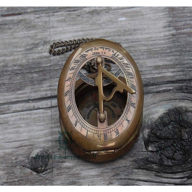 The Sundial is made of Premium Grade Brass and the Sun Dial comes with a gift box, made of hardwood box beautiful by itself. Beautifully crafted solid brass pocket sundial compass with a rich, antique patina finish. Portable design, convenient to carry. A valued as decorative objects, literary metaphors, and objects of mathematical study. Nautical collectors, enthusiasts, and seafarer alike will love this stunning brass Sundial Compass. As a perfect present, this Sundial Compass for sale is a gleaming recreation of the classic antique compass that have guided sailors since the 1100s Size: This pocket brass compass is a memorable navy gift for birthdays, anniversaries, valentine's day & corporate functions. A great gift for maritime, nautical, hiking & outdoor enthusiast