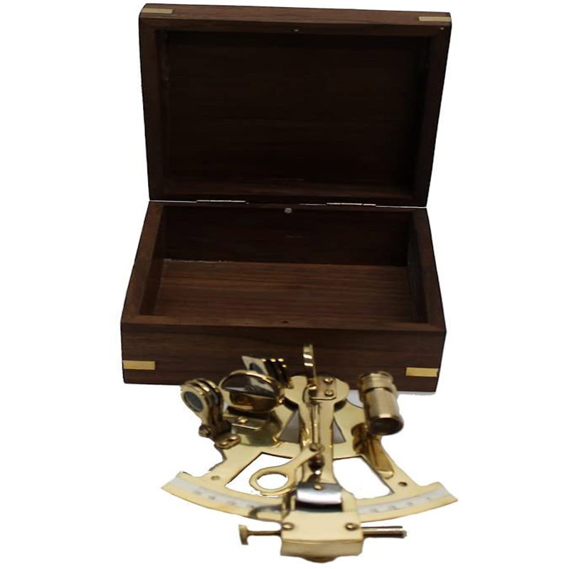 QUALITY PRODUCT: This is a functional brass sextant with an antique brass finish. It is safely packed in a beautiful rose wooden box. This brass sextant is made from premium quality Brass. This high-quality jeweled sextant determines Longitude and Latitude.