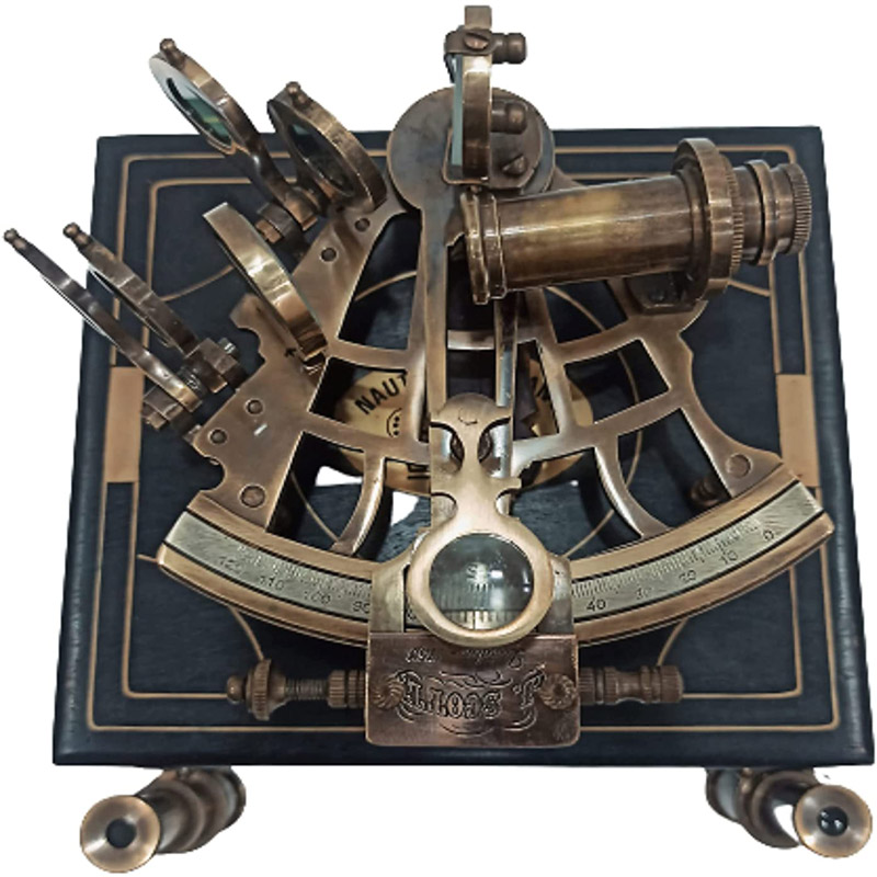 QUALITY PRODUCT: This is a functional brass sextant with an antique brass finish. It is safely packed in a beautiful rose wooden box. This brass sextant is made from premium quality Brass. This high-quality jeweled sextant determines Longitude and Latitude.