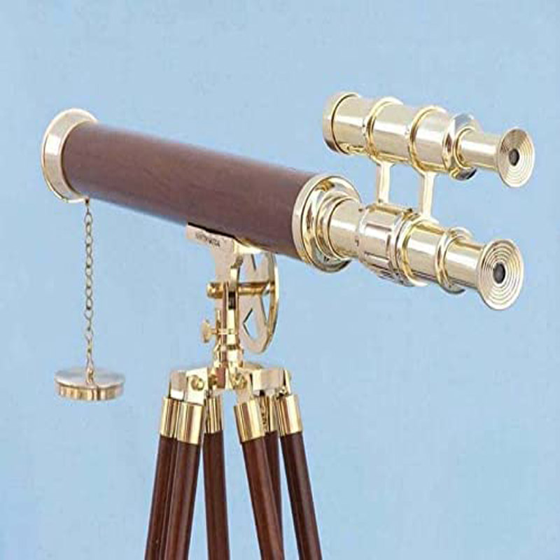Vintage Brass Nautical red Leather Tripod Double Barrel Telescope Floor Standing Telescope- Brass Nautical Decor Floor Standing Chrome Telescope 40" - Nautical Marine Telescope